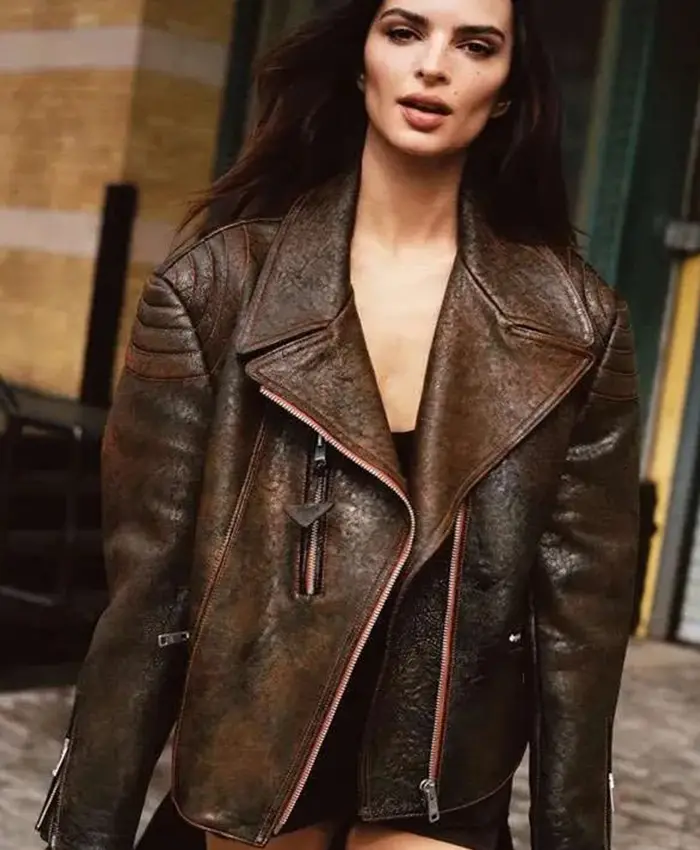 Be the first to review “Emily Ratajkowski Brown Distressed Leather Jacket” Cancel reply