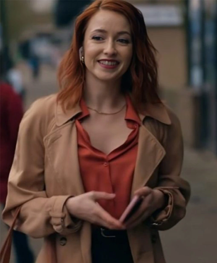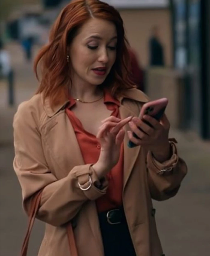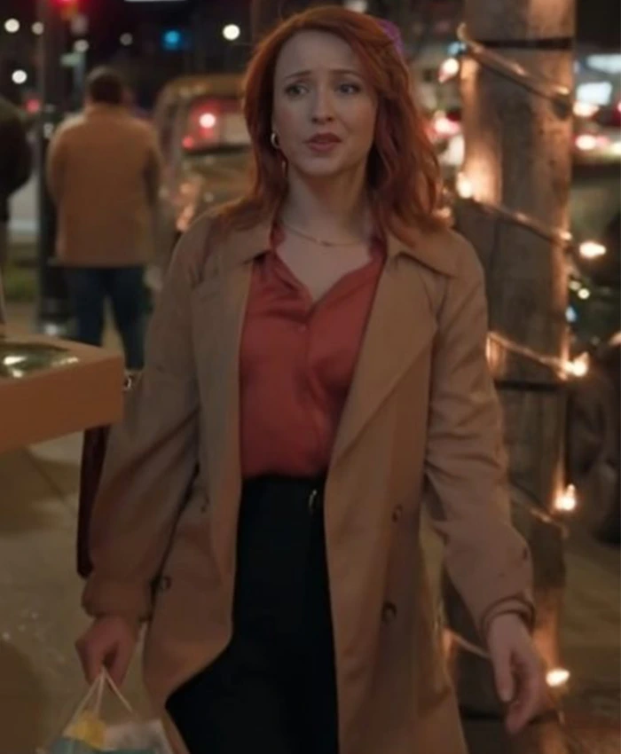 Casey Movie The Wish Swap 2025 Emily Tennant Brown Double-Breasted Cotton Coat