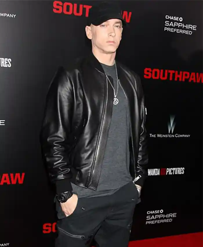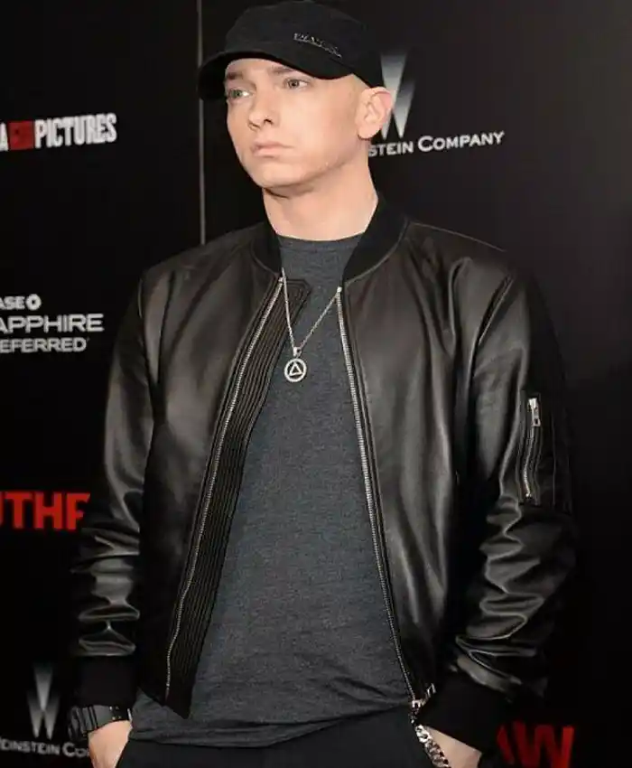 Incredible American Rapper Eminem’s Black Bomber Leather Jacket For Men