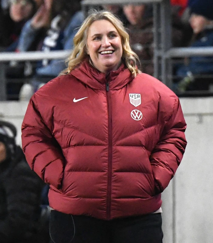USA Team Match Emma Hayes 2025 Maroon Puffer Jacket For Sale