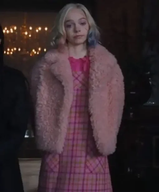 Enid Sinclair TV Series Wednesday 2022 Emma Myers Pink PU Fur Jacket