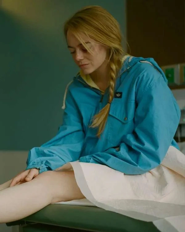Rita Movie Kinds of Kindness Emma Stone Blue Hooded Parachute Jacket