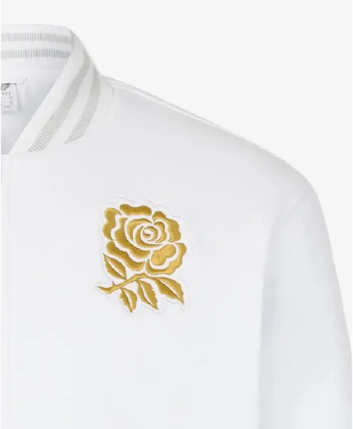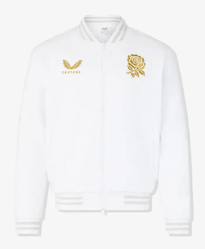 England Rugby Undefeated Castore White Zip-Up Bomber Jacket For Men and Women