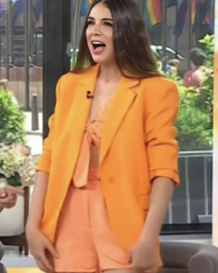 Erica Wark’s Orange Blazer is suitable for a variety of occasions. Pair it with fitted pants and a clean white blouse to create a smart office outfit. Layer it over a classic black dress or high-waisted skirt and shoes for a night out. For a more casual look, wear it with pants and a basic tee for a splash of color and flair. Get your own Erica Wark inspired orange blazer from our website at your earliest, before the stock ends.