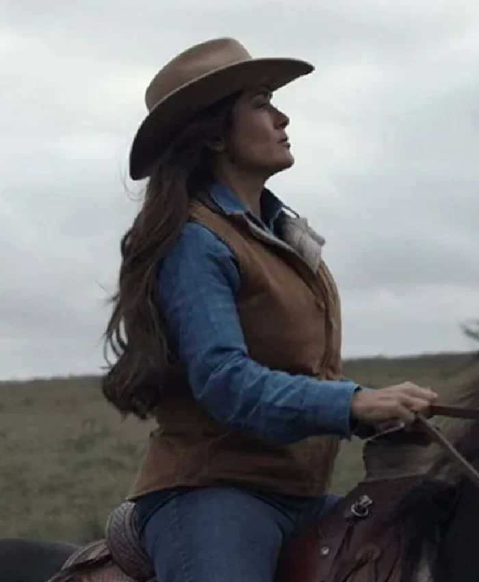 Salma Hayek Eternals 2021 Ajak Brown Leather Vest For Women
