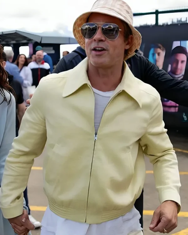 Formula 1 British Grand Prix Brad Pitt Cotton Fabric Pastel Yellow Jacket For Men