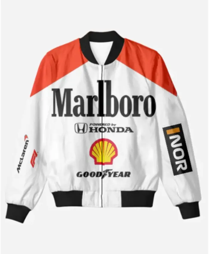 Marlboro’s name became closely linked with Formula 1 racing, where bold red plus white colors stood out on fast cars. Furthermore, that strong racing identity later inspired stylish jackets that fans still love today.