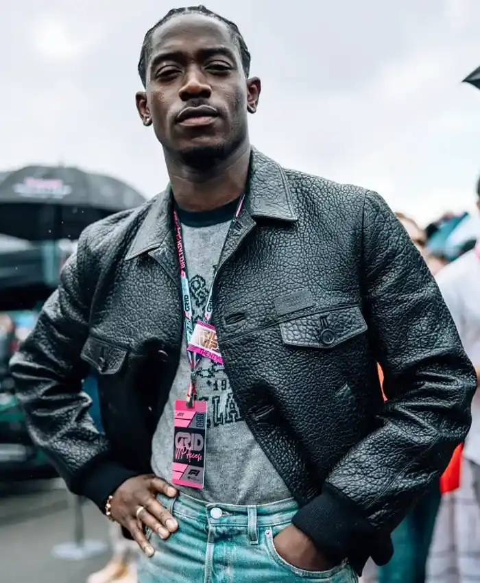 Damson Idris F1 The Movie 2025 Joshua Pearce Black Bomber Leather Jacket