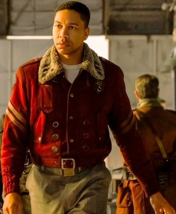 Aaron Moten TV-Series Fallout 2025 Maximus Red Shearling Jacket