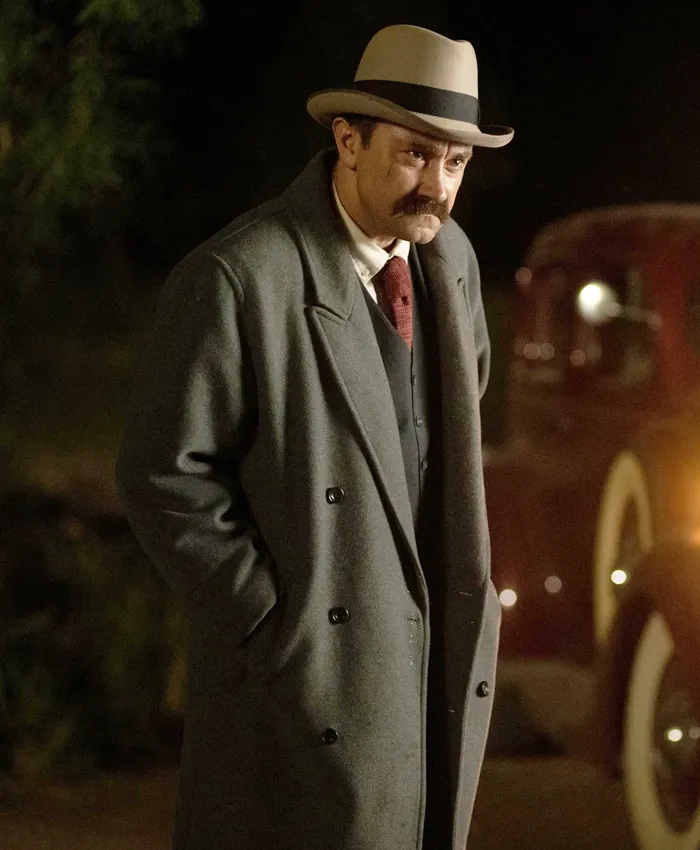 Josh McConville Movie Fear Below 2025 Janusz Wojcik Grey Wool Trench Coat