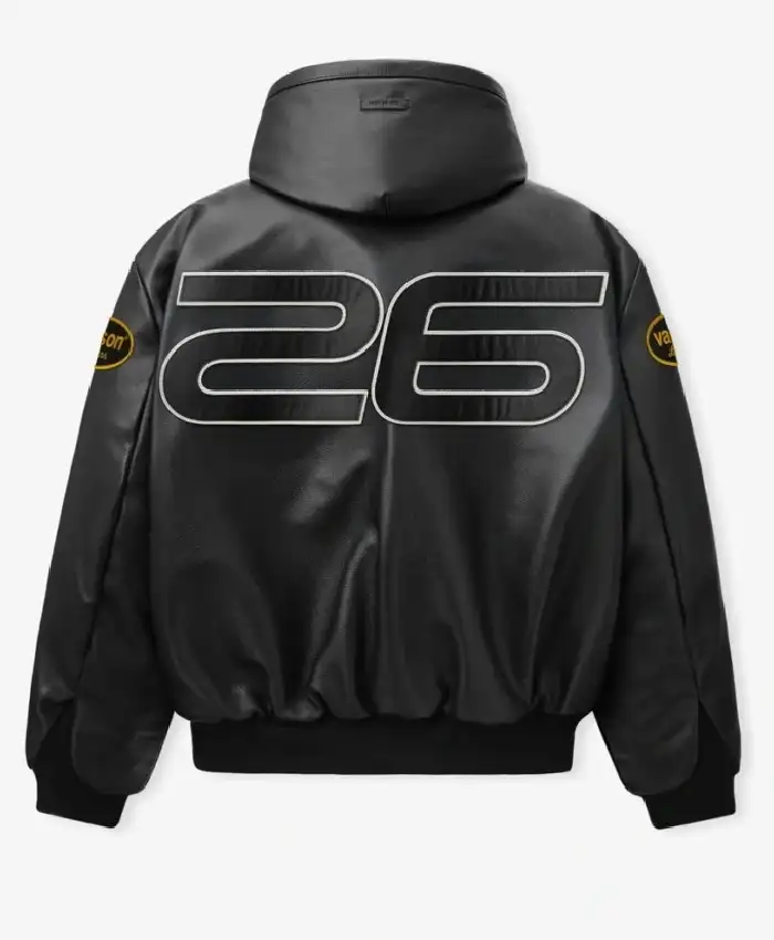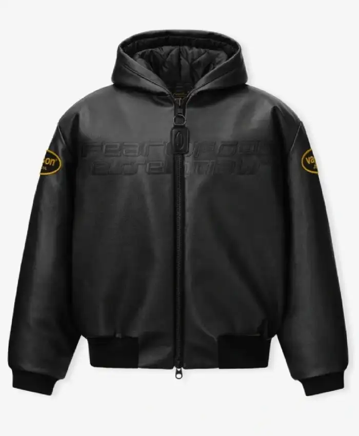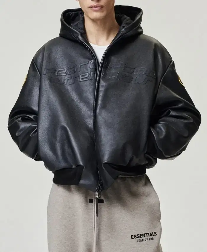 Fear of God x Vanson Essentials Black Leather Hooded Bomber Jacket On Sale For Men and Women