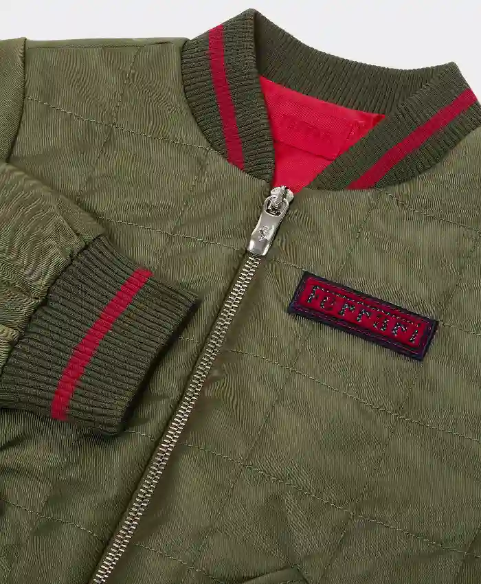 The Ferrari Olive Green Technical Bomber Jacket is also practical since it has two outer pockets for carrying items like your phone. An inner pocket provides extra space to keep important items safe plus secure. The olive green color gives a unique look that stands out without getting too loud.
