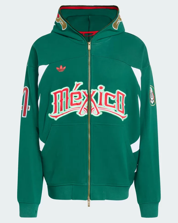 For a sporty look, the Adidas x Mexico FIFA World Cup 2026 Green Hoodie is a great choice. It is comfortable and useful in a clean way, and it’s made to be used every day. The fleece on the outside keeps you warm, and the viscose on the inside is soft against your skin. The YKK zipper hooded collar also lets you adapt to changing weather. This hoodie looks great whether you’re going out with friends or watching a game at home.