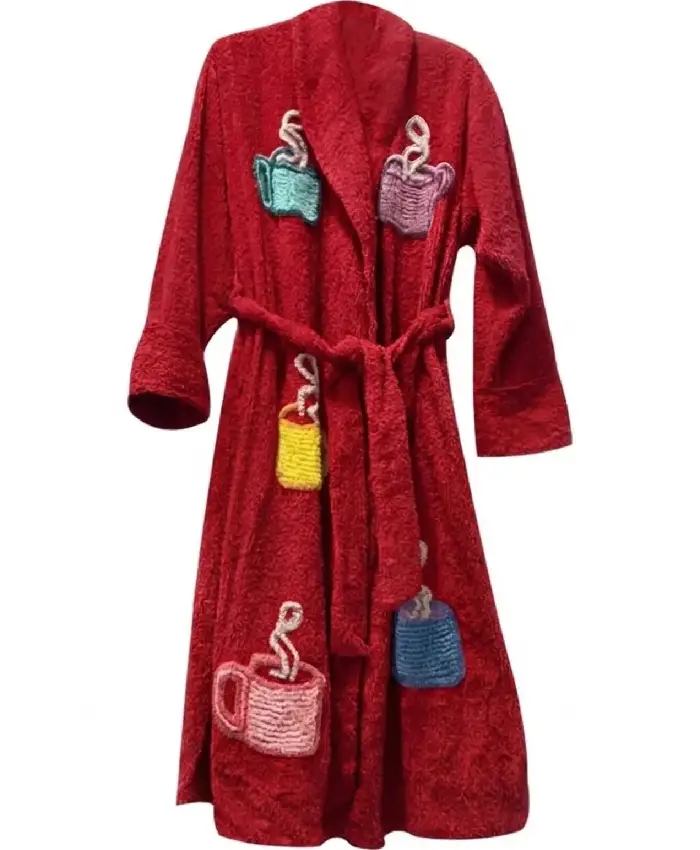 Soft terry fabric with a cozy lining provides wrapped comfort and breathable warmth for relaxing.