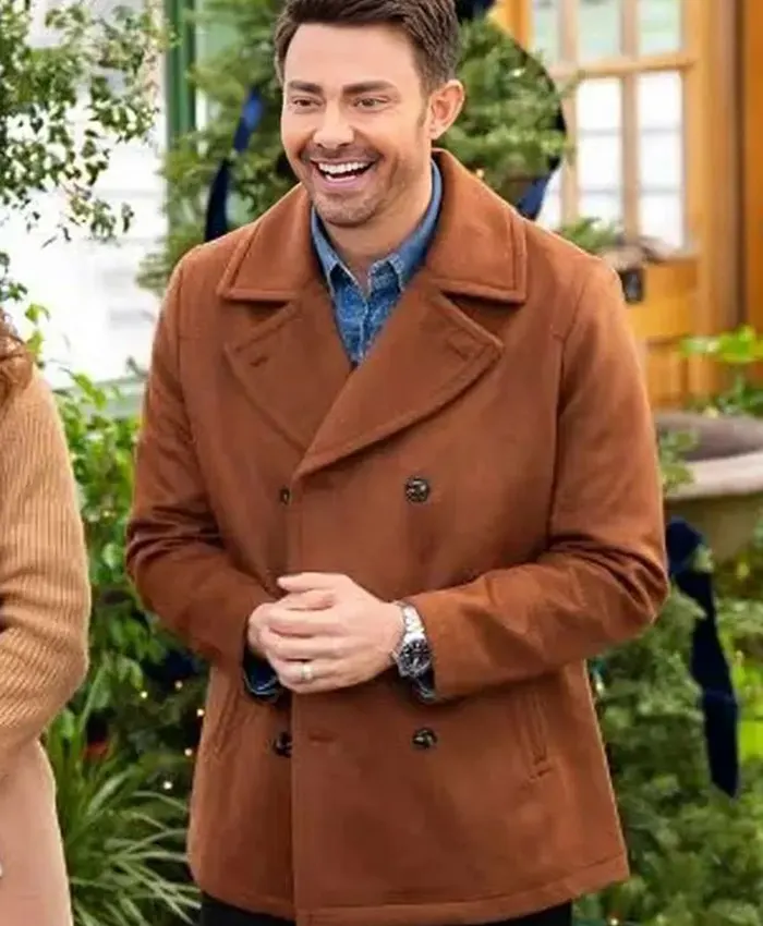 Wrap Up in Holiday Charm with Jonathan Bennett’s Finding Mr. Christmas Brown Peacoat