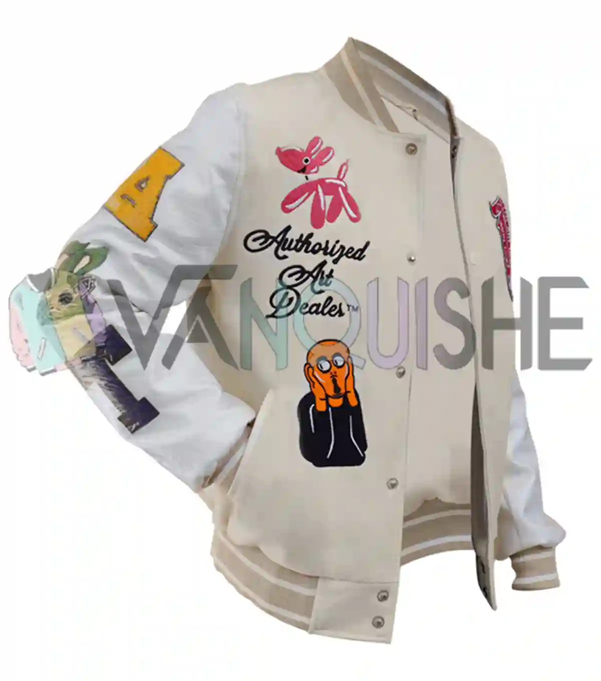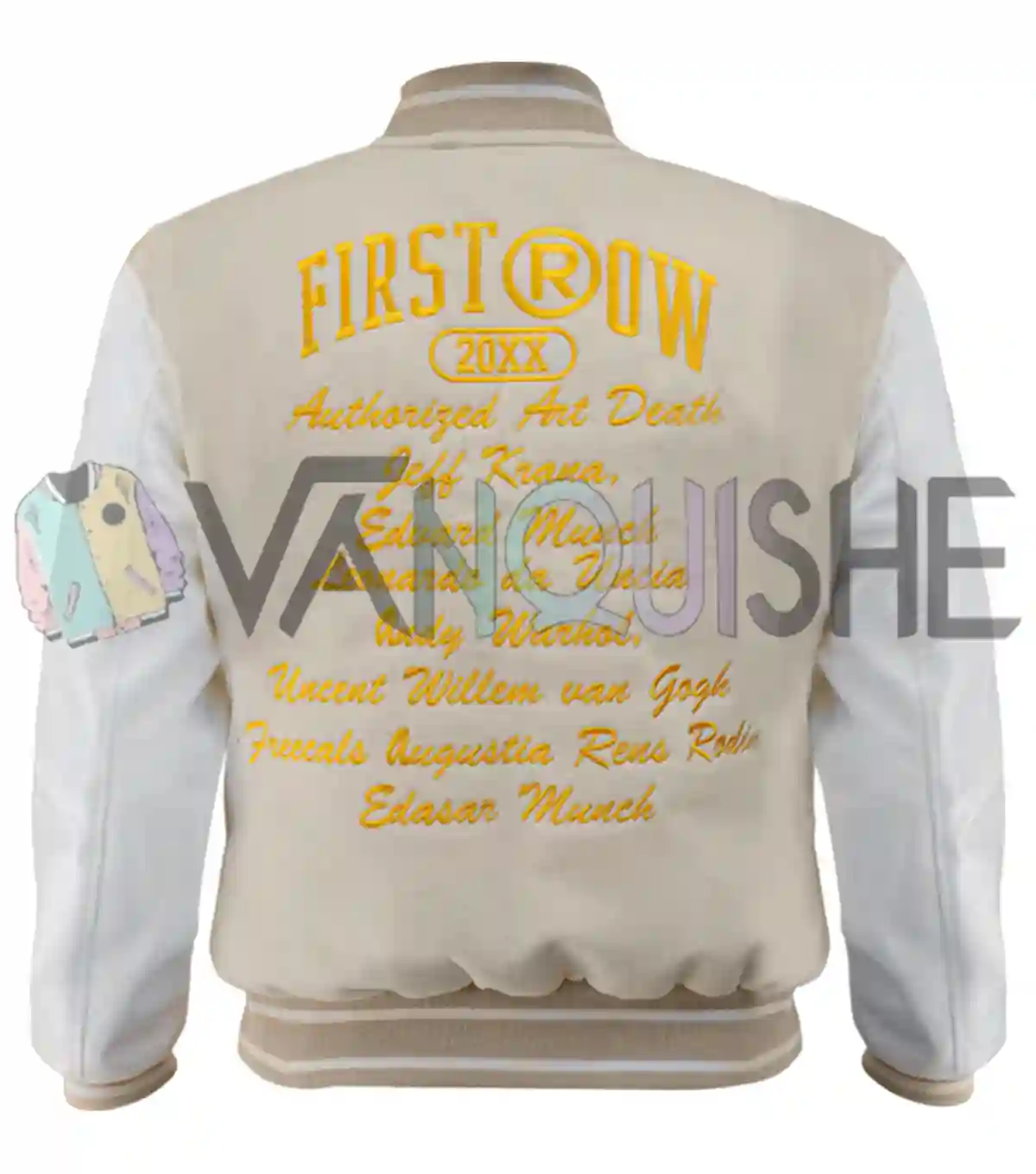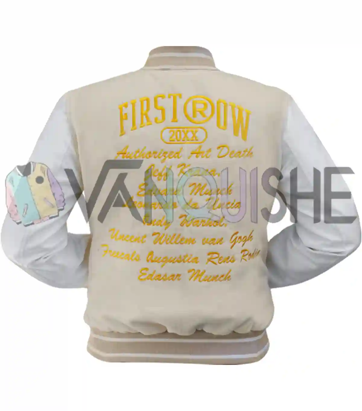 Be the first to review “First Row Art Dealer Graphic Cropped Cream Varsity Jacket” Cancel reply
