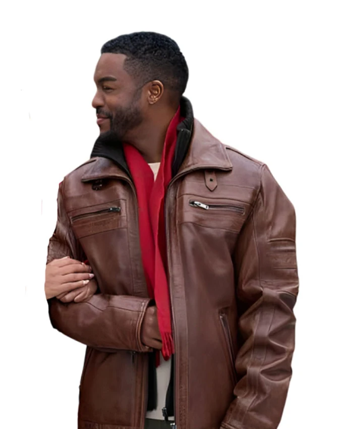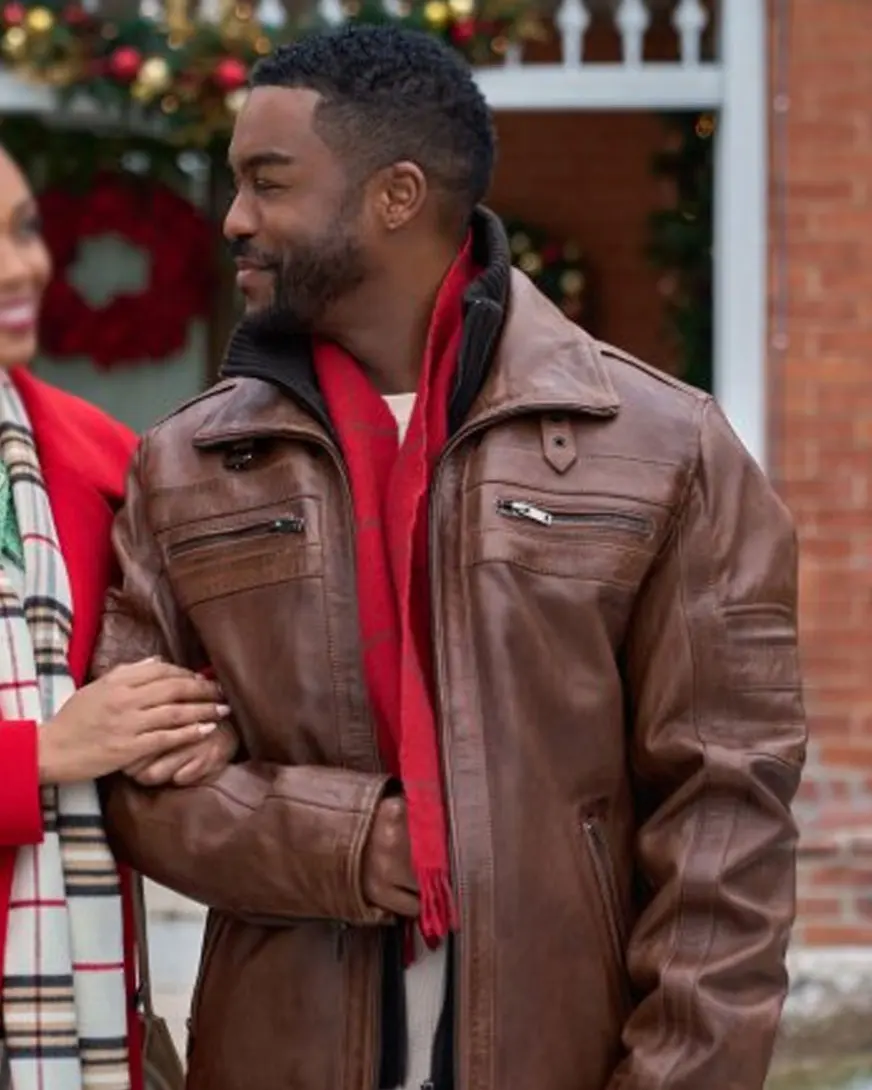Jaime M. Callica Movie Christmas with a Kiss Fletcher Brown Leather Jacket