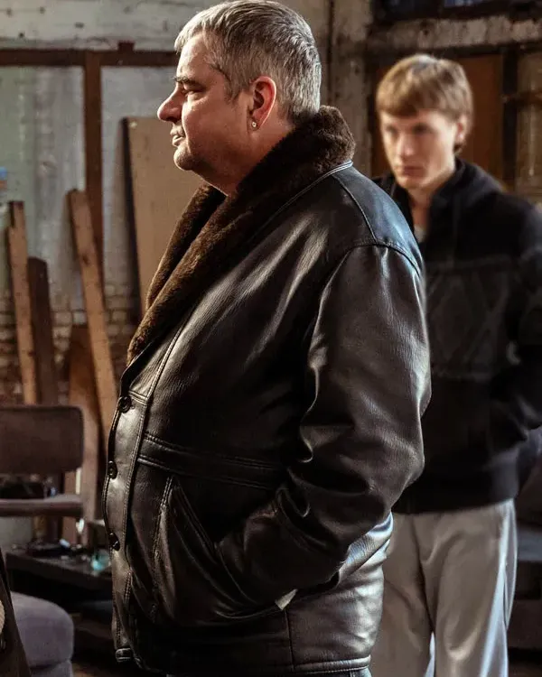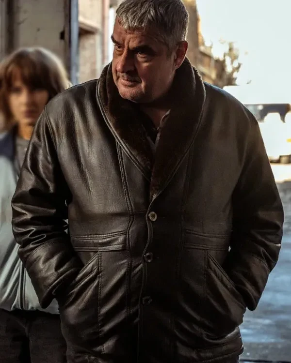Ferry Bouman Ferry 2 Movie 2024 Frank Lammers Black Leather Shearling Jacket For Sale
