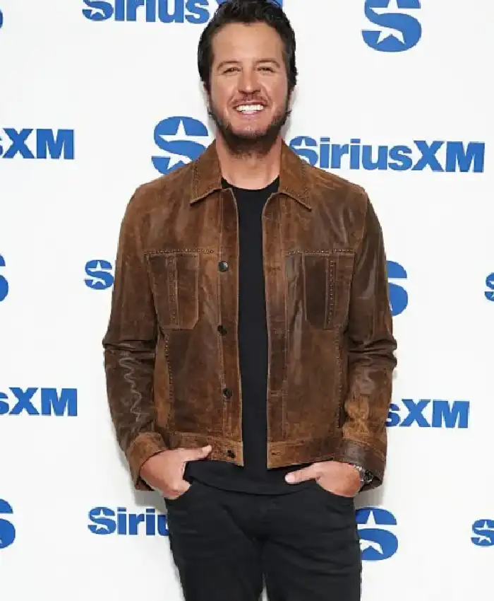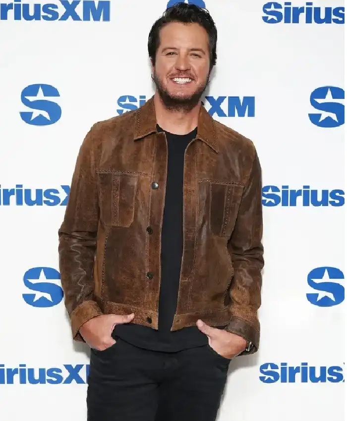 Luke Bryan SiriusXM’s Front Row Event 2026 Brown Trucker Leather Jacket On Sale For Men