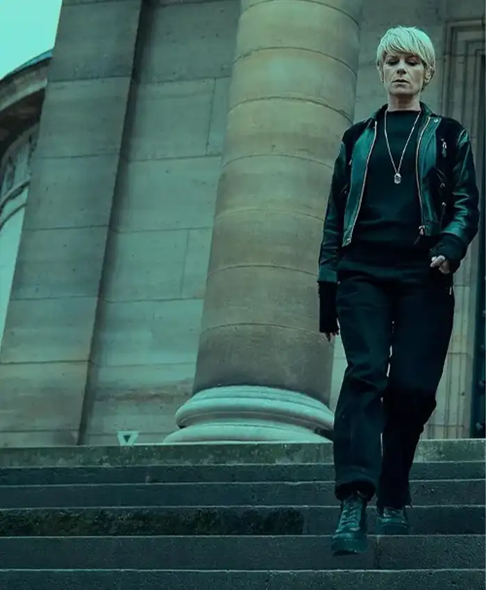 Marina Foïs Furies Season 01 TV Series 2024 Selma Black Leather Jacket For Sale