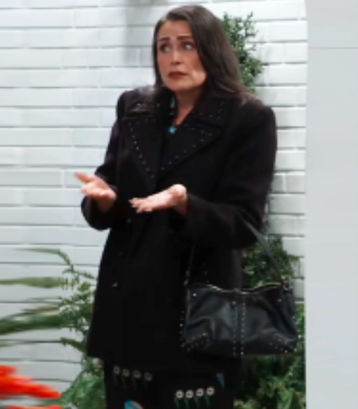 Rena Sofer TV-Series General Hospital 2025 Lois Cerullo Black Studded Wool Coat