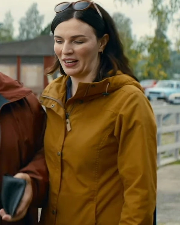 Aisling Bea 2024 Get Away Movie Susan Hooded Yellow Jacket For Sale