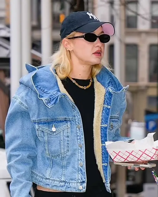 Get Amazing Gigi Hadid Blue Hooded Denim Jacket For Women