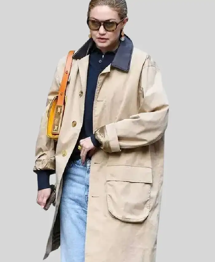 Order Today Gigi Hadid Beige Trench Long Coat Sale For Women