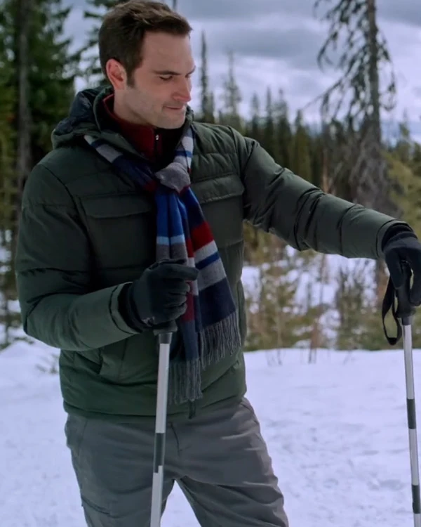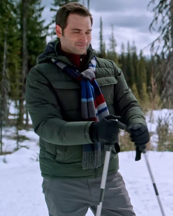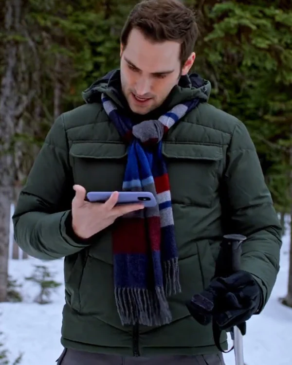 Adam Docker Movie Snowy with a Chance of Christmas 2024 Giles Panton Green Hooded Jacket