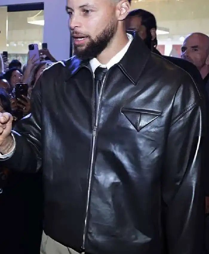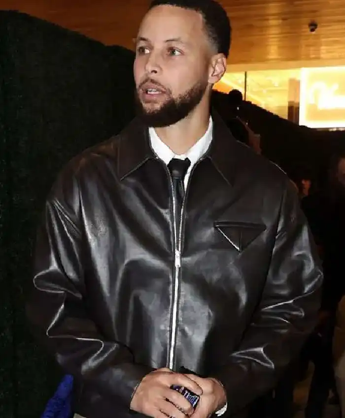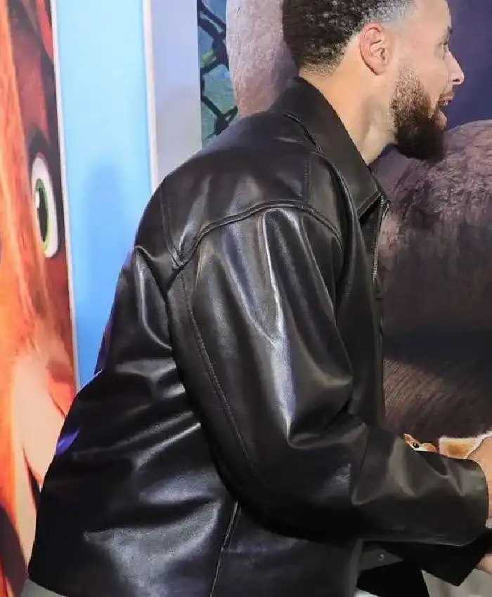Stephen Curry Goat Movie Premiere 2026 Black Leather Jacket For Men