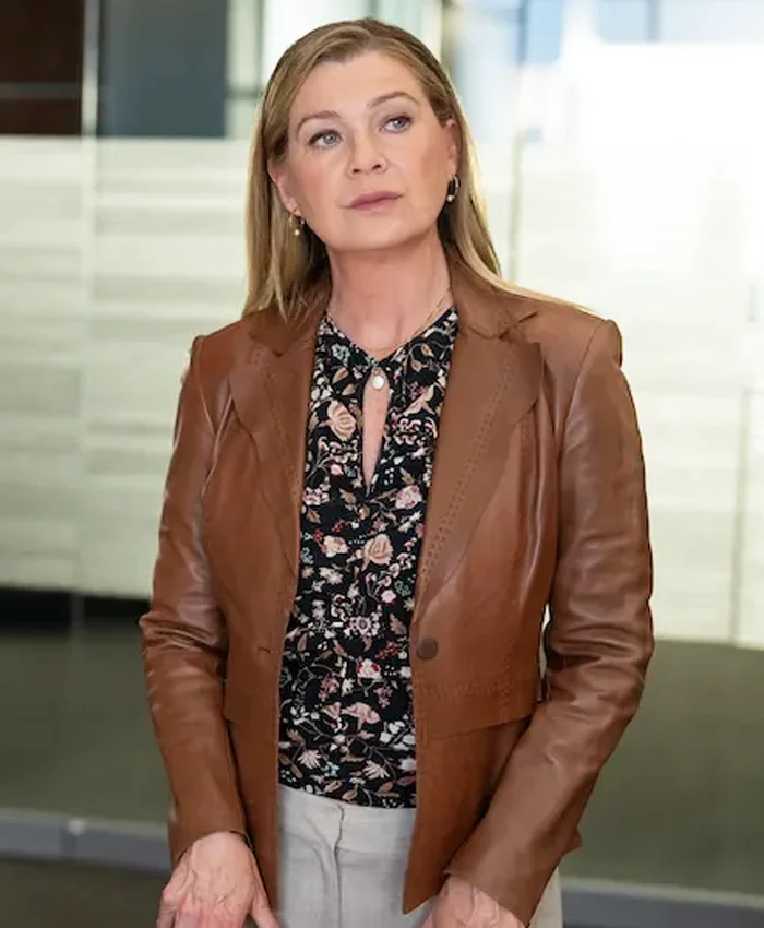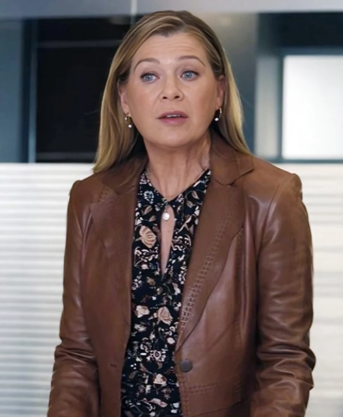 Ellen Pompeo TV-Series Good American Family 2025 Kristine Barnett Brown Leather Blazer