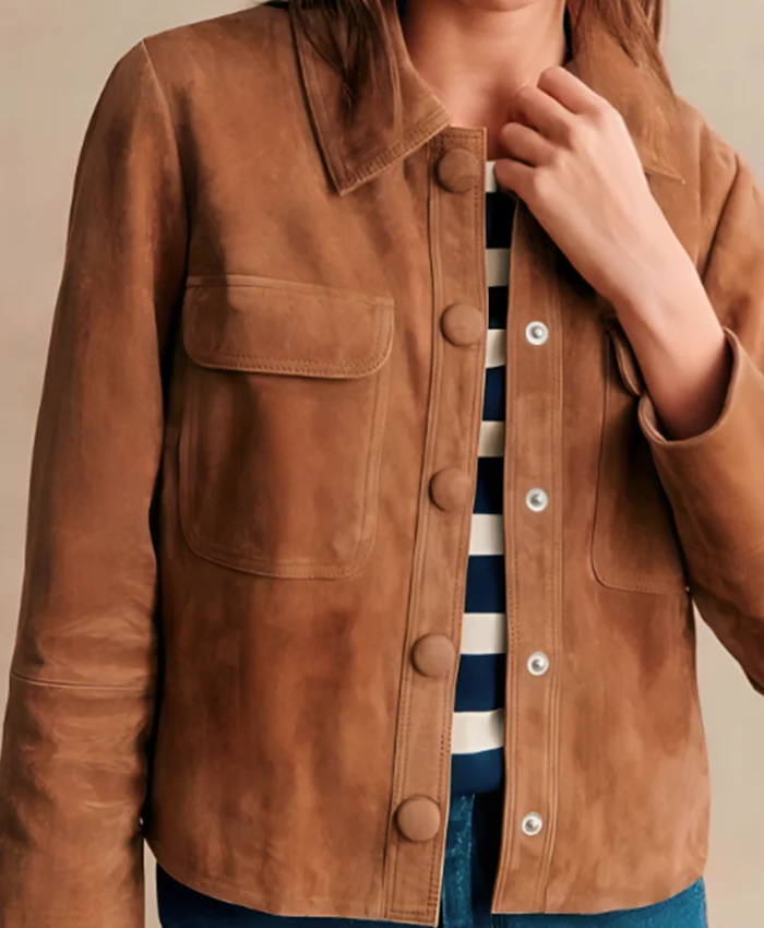 Buy Lou Hickman TV-Series Good Cop/Bad Cop 2025 Leighton Meester Brown Suede Jacket