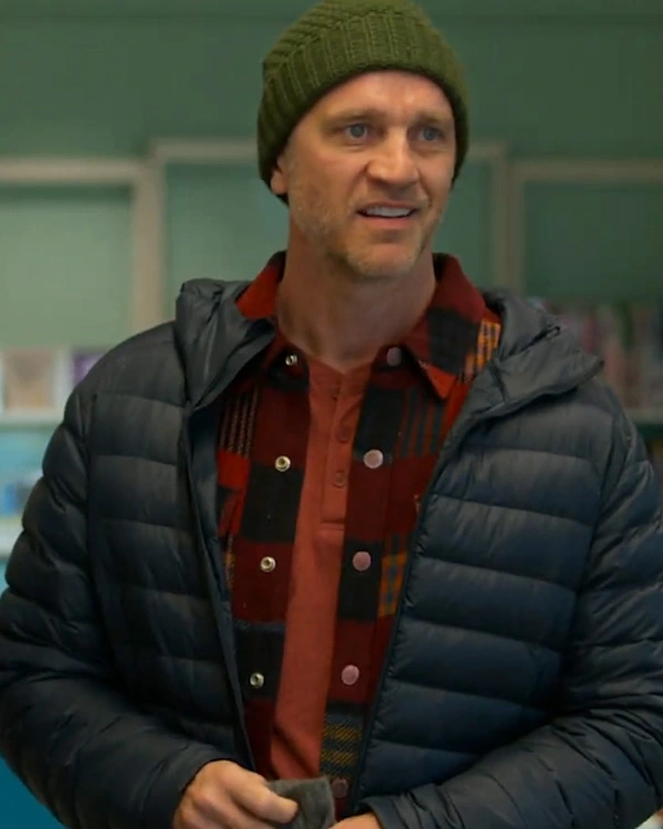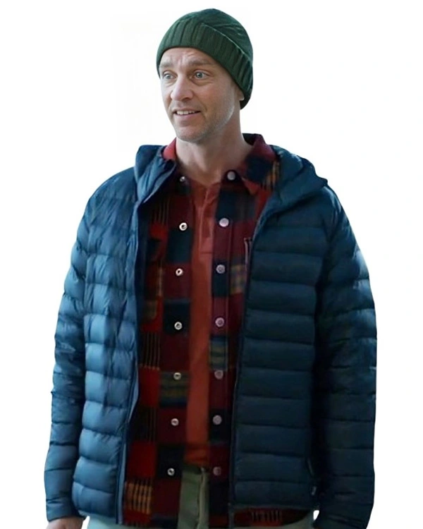 Devon Sawa TV Series Murder In A Small Town 2024 Gordon Murphy Blue Puffer Hooded Jacket