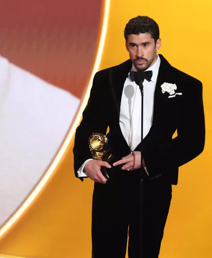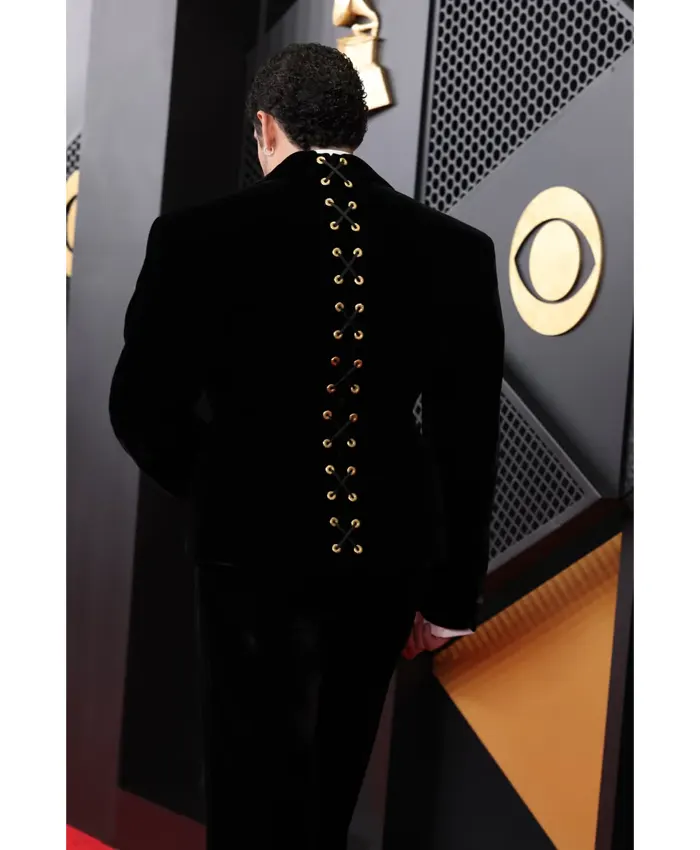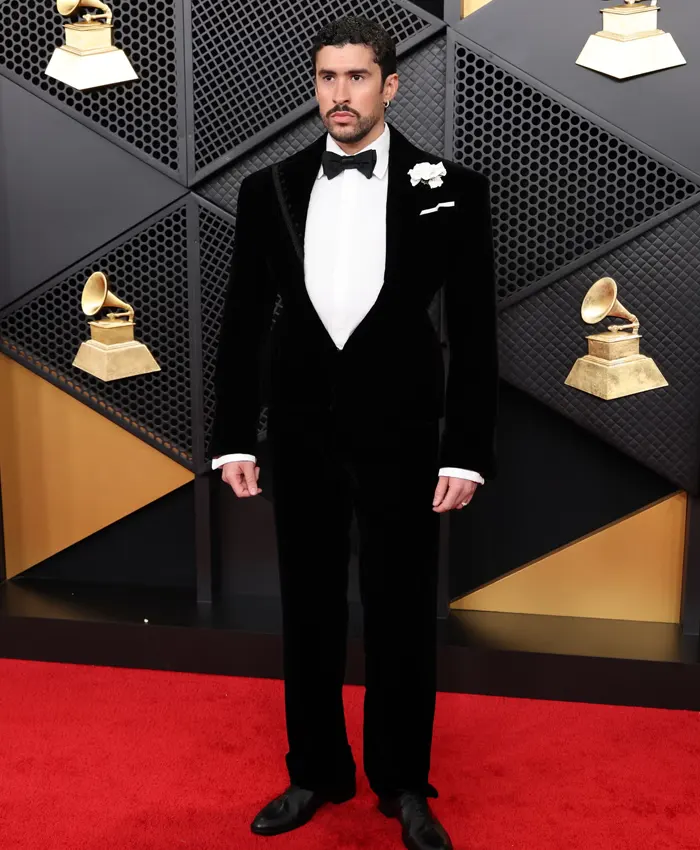 Bad Bunny Grammy Award 2026 Black Velvet Blazer For Men