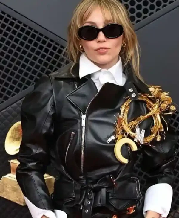 Los Angeles Miley Cyrus Grammy Awards 2026 Black Leather Jacket For Women