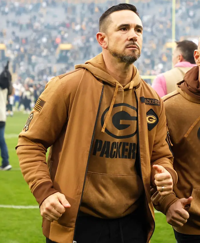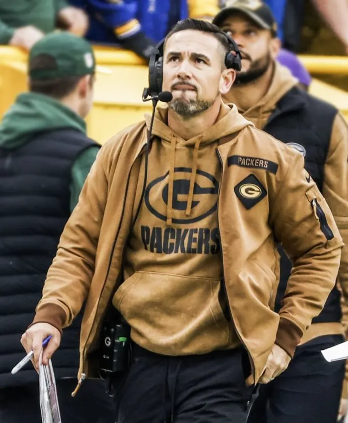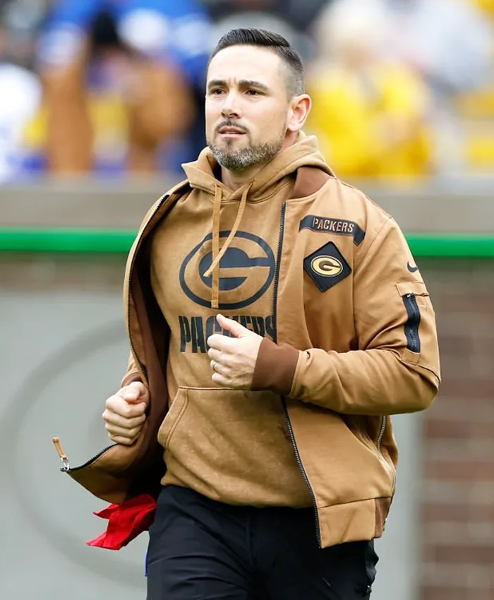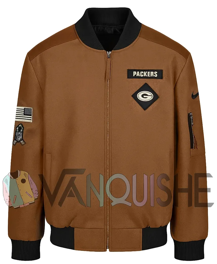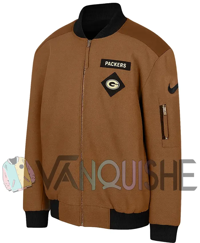 Matt LaFleur NFL Green Bay Packers Salute To Service Brown Vintage Bomber Jacket