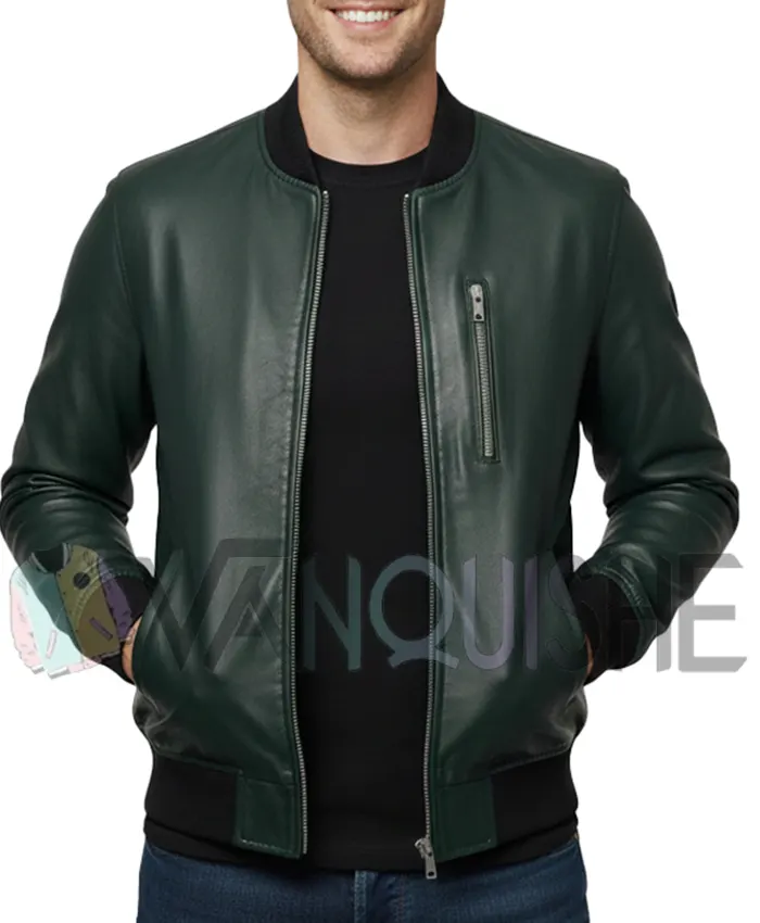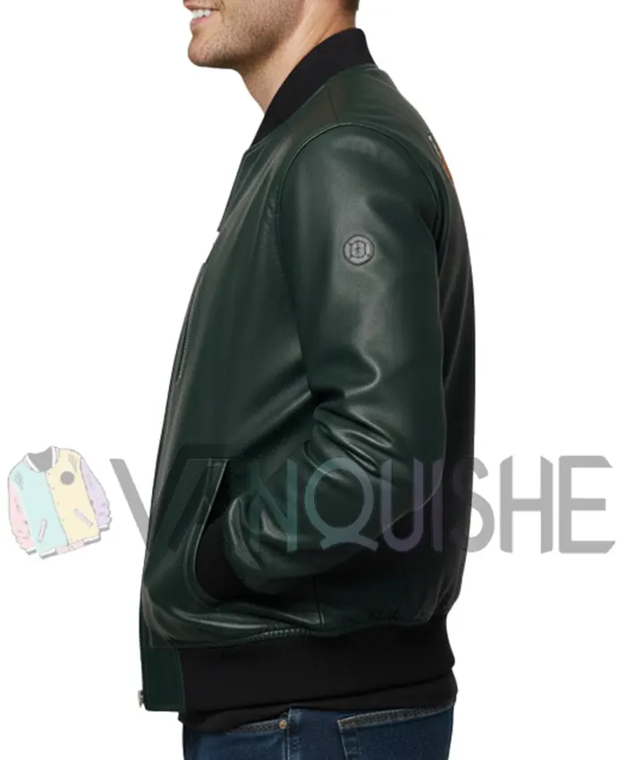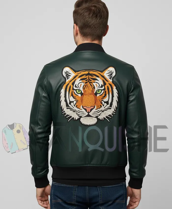 Stand Out with the Green Leather Bomber with Tiger Patch Jacket