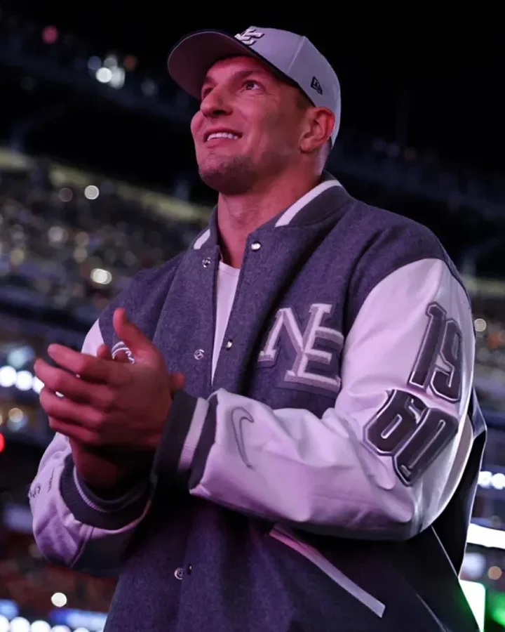 For decades, varsity jackets have been an important part of sportswear because they are comfortable, last a long time, and show team spirit all in one jacket. The Rob Gronkowski Patriots Varsity Jacket carries on that tradition with a stylish and classy look thanks to its leather sleeves and high-quality wool. The New England Patriots’ colors inspired the gray and white color scheme of this item, which makes it useful for a range of occasions, from game days to casual trips.