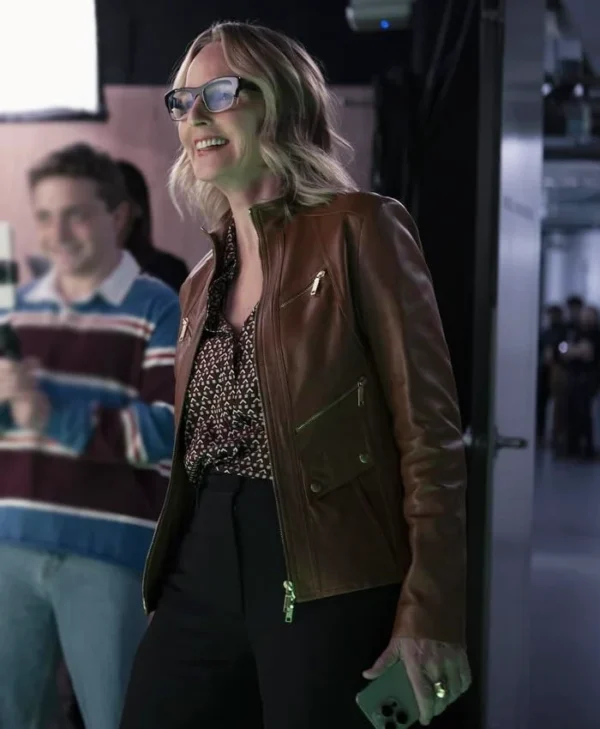 Helen Hunt TV-Series Hacks 2025 Winnie Landell Brown Leather Jacket