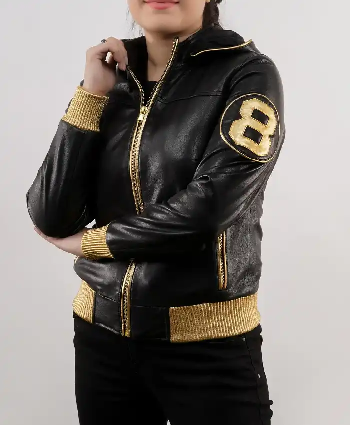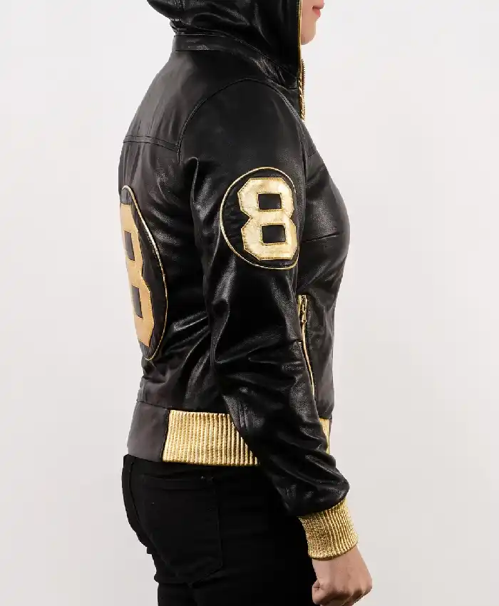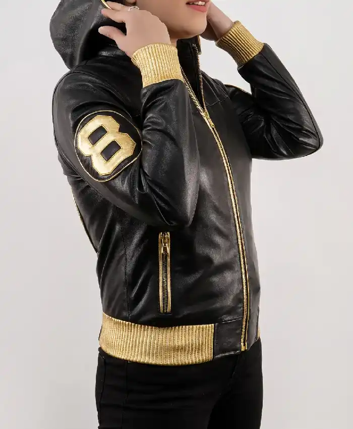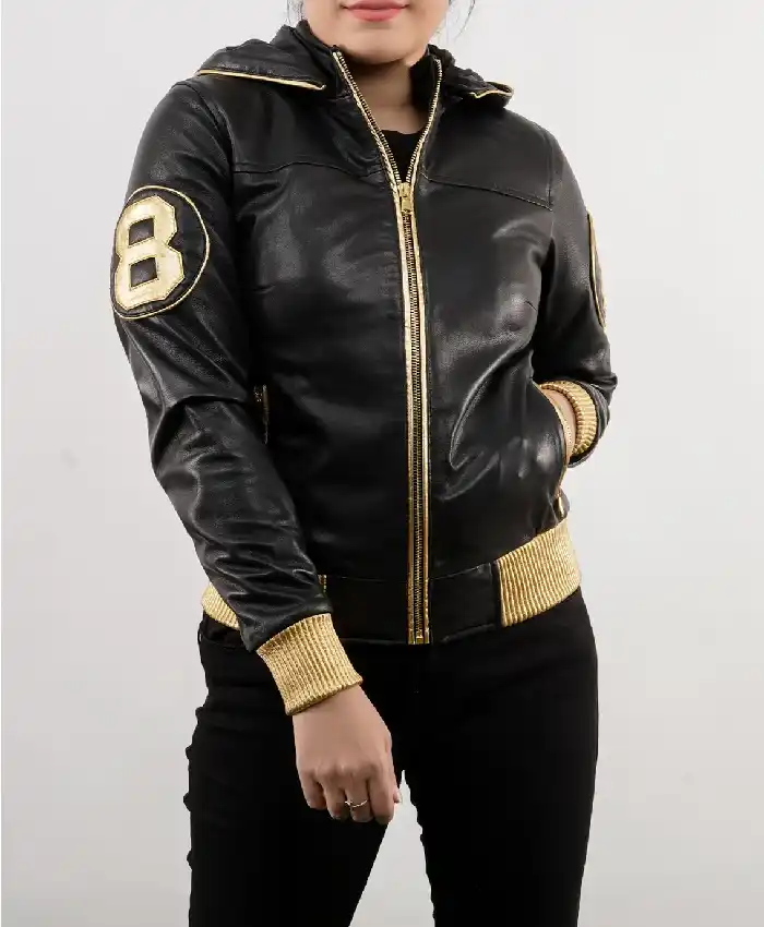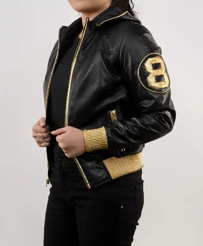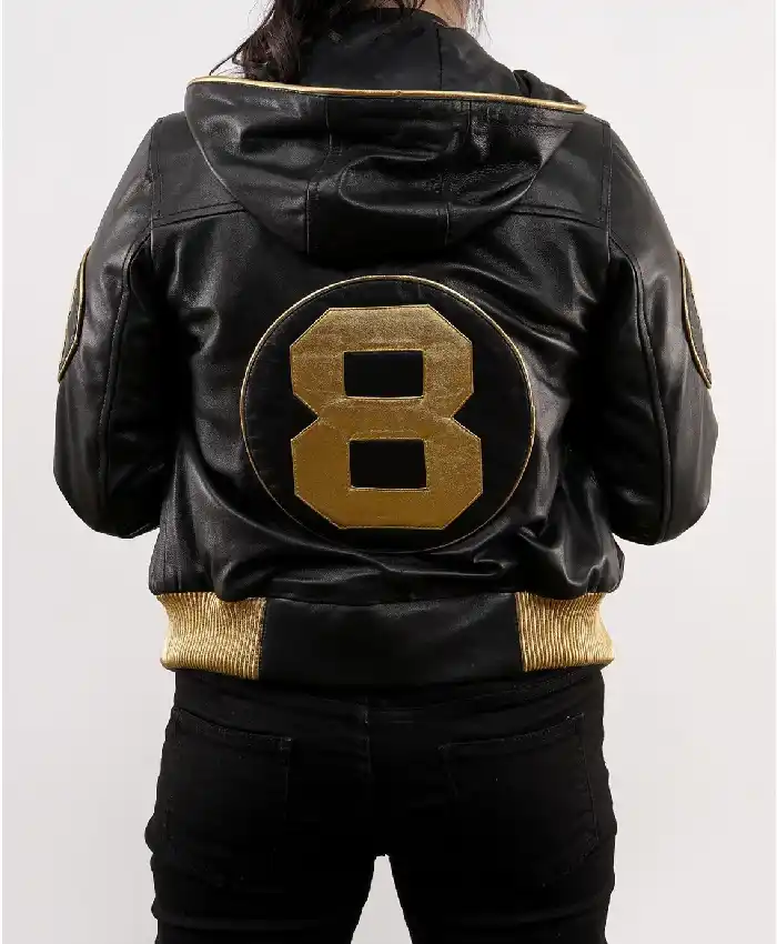 Handmade 8 Ball David Puddy Black and Golden Jacket Bomber Leather Jacket For Men and Women