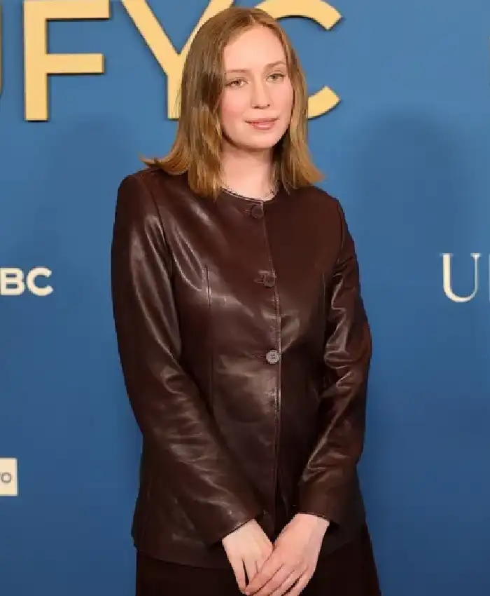 Buy Hannah Einbinder NBCUniversal Emmy Luncheon Brown Leather Jacket For Women