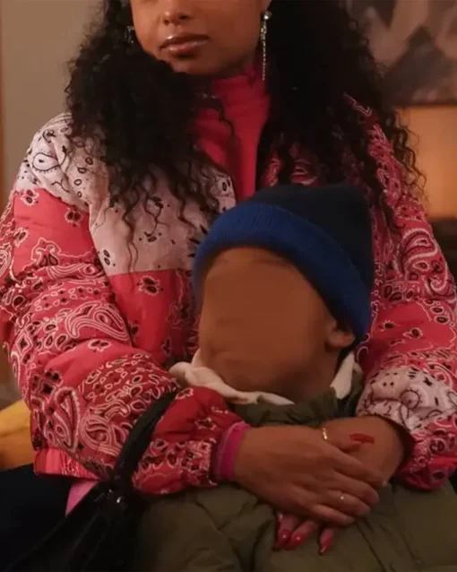 Hannaha Hall The Chi Season 5 Episode 1 Tiffany Pink Bandana Puffer Cropped Bomber Jacket