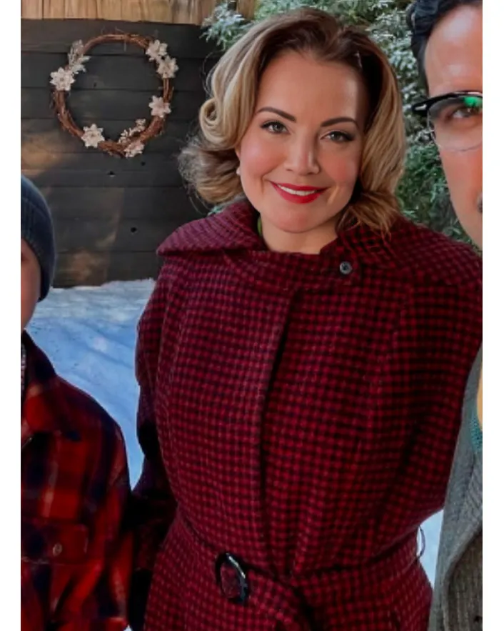 Erica Durance TV-Movie Happy Holidays from Cherry Lane 2024 Penny Wool Plaid Belted Coat