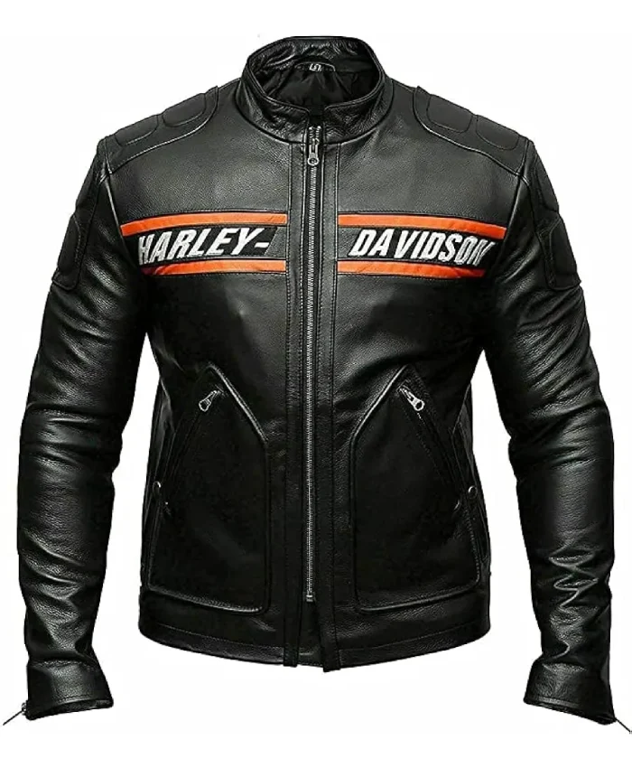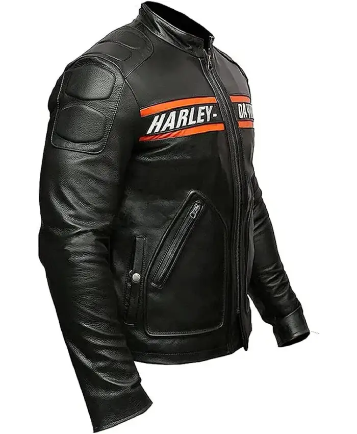 Harley Davidson Motorcycle Padded Black Leather Jacket For Men