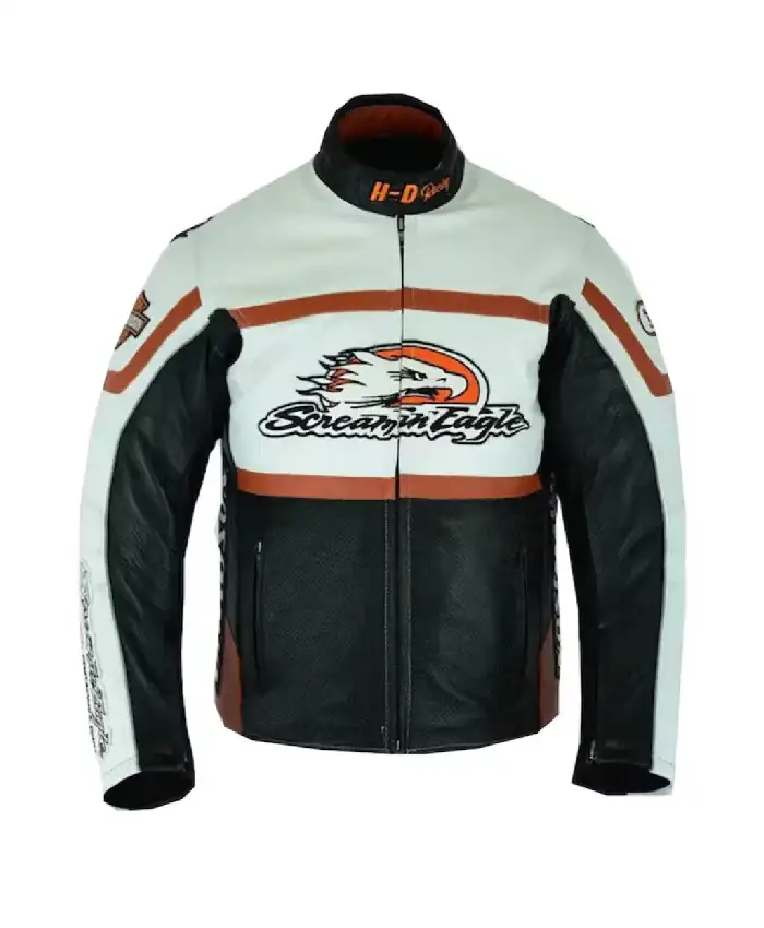 Harley Davidson Screamin Eagle Black and White Racing Leather Jacket