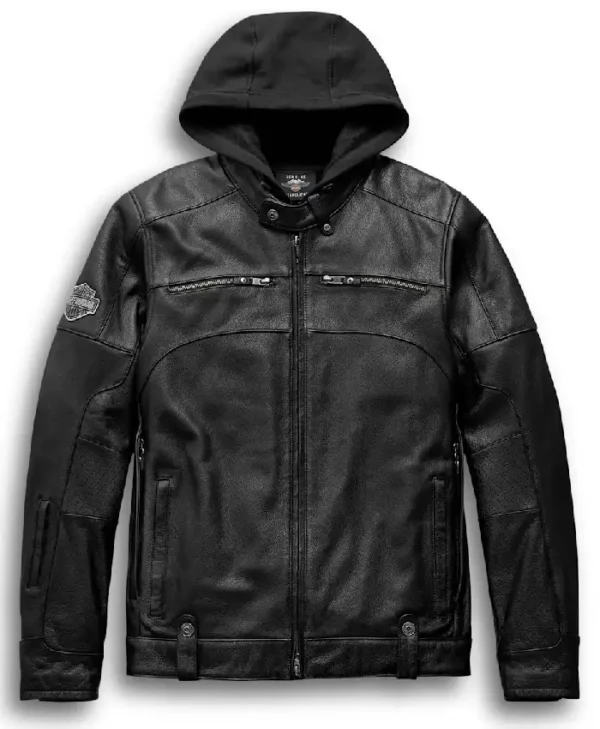 Harley Davidson Swingarm Black Biker Leather Jacket For Men