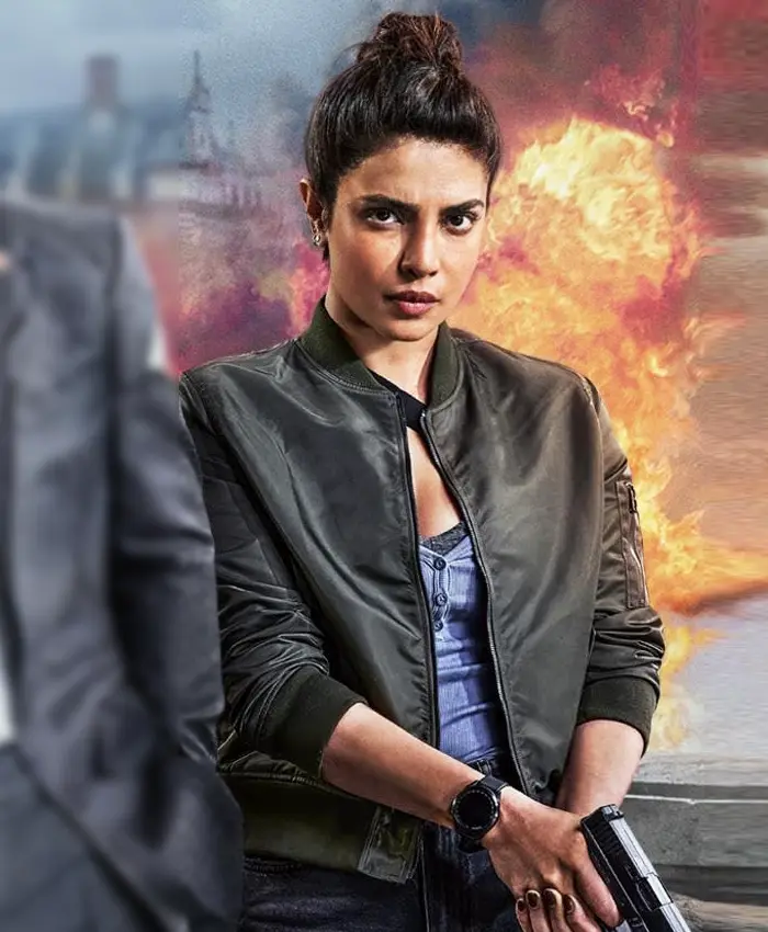 Priyanka Chopra Jonas Movie Heads of State 2025 Noel Bisset Black Bomber Jacket