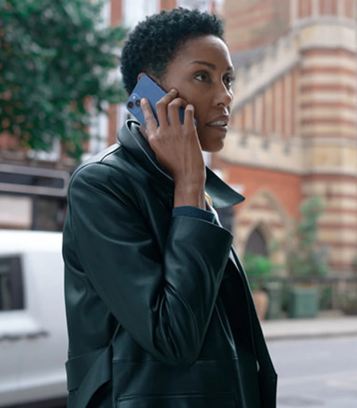 Christine Adams TV-Series Hijack Marsha Nelson-Smith Black Leather Coat