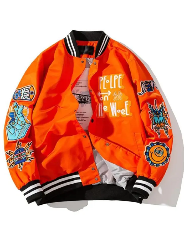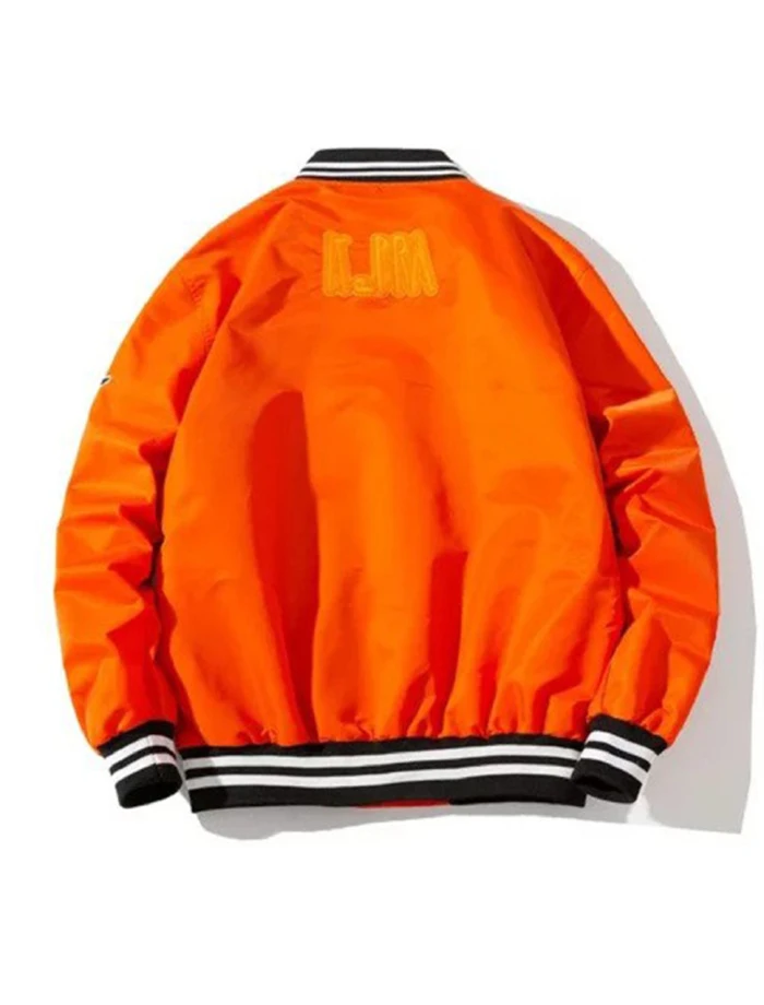 Patchwork Orange Hip Hop Varsity Bomber Jacket For Sale