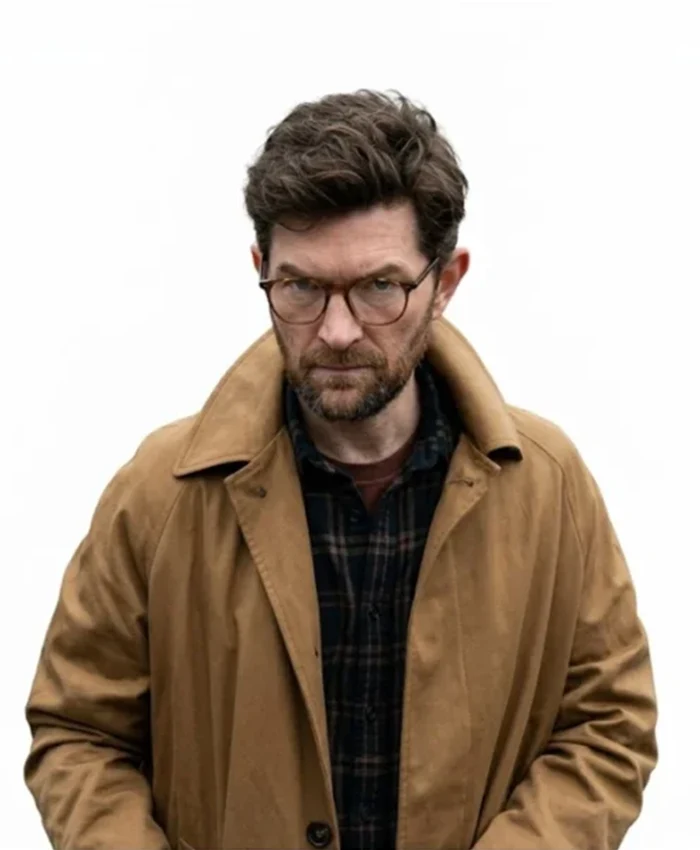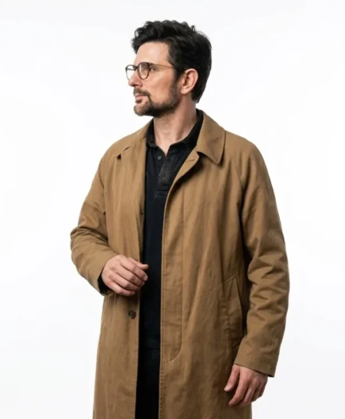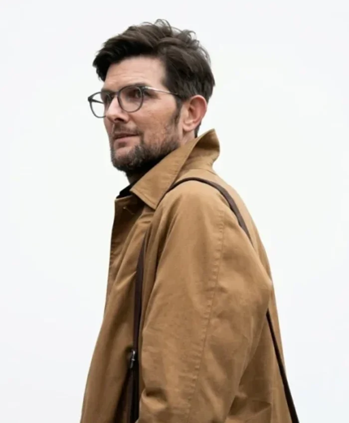 Adam Scott Movie Hokum 2026 Ohm Bauman Brown Cotton Trench Coat For Men